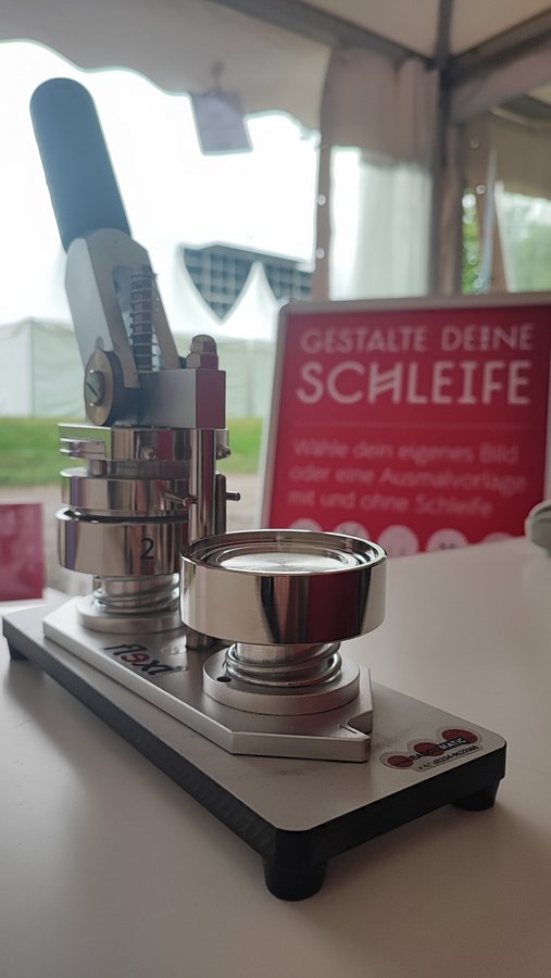 1. Foto-Schleife: Lieblingsfoto auf dem Handy mitbringen. Das Motiv wird vor Ort ausgedruckt, in einen hochwertigen Button gepresst und mit einer Schleife in Wunschfarbe bestückt.